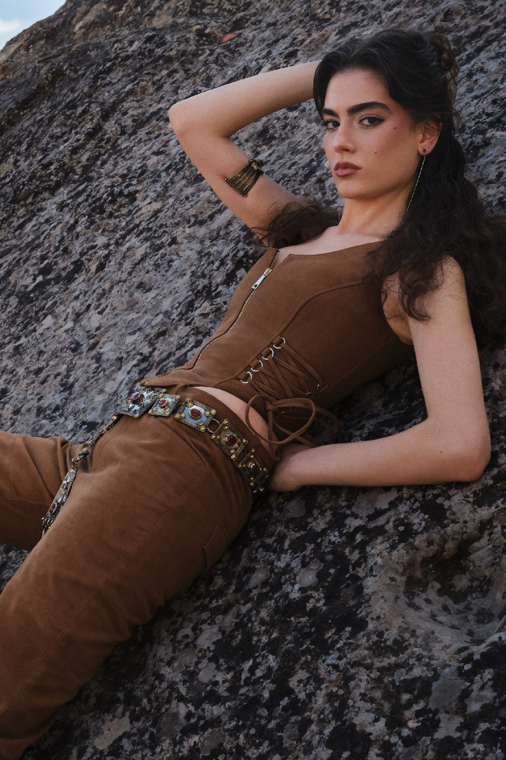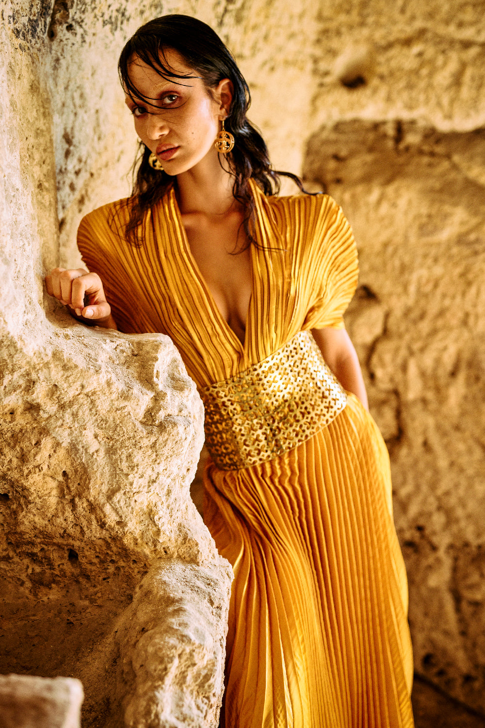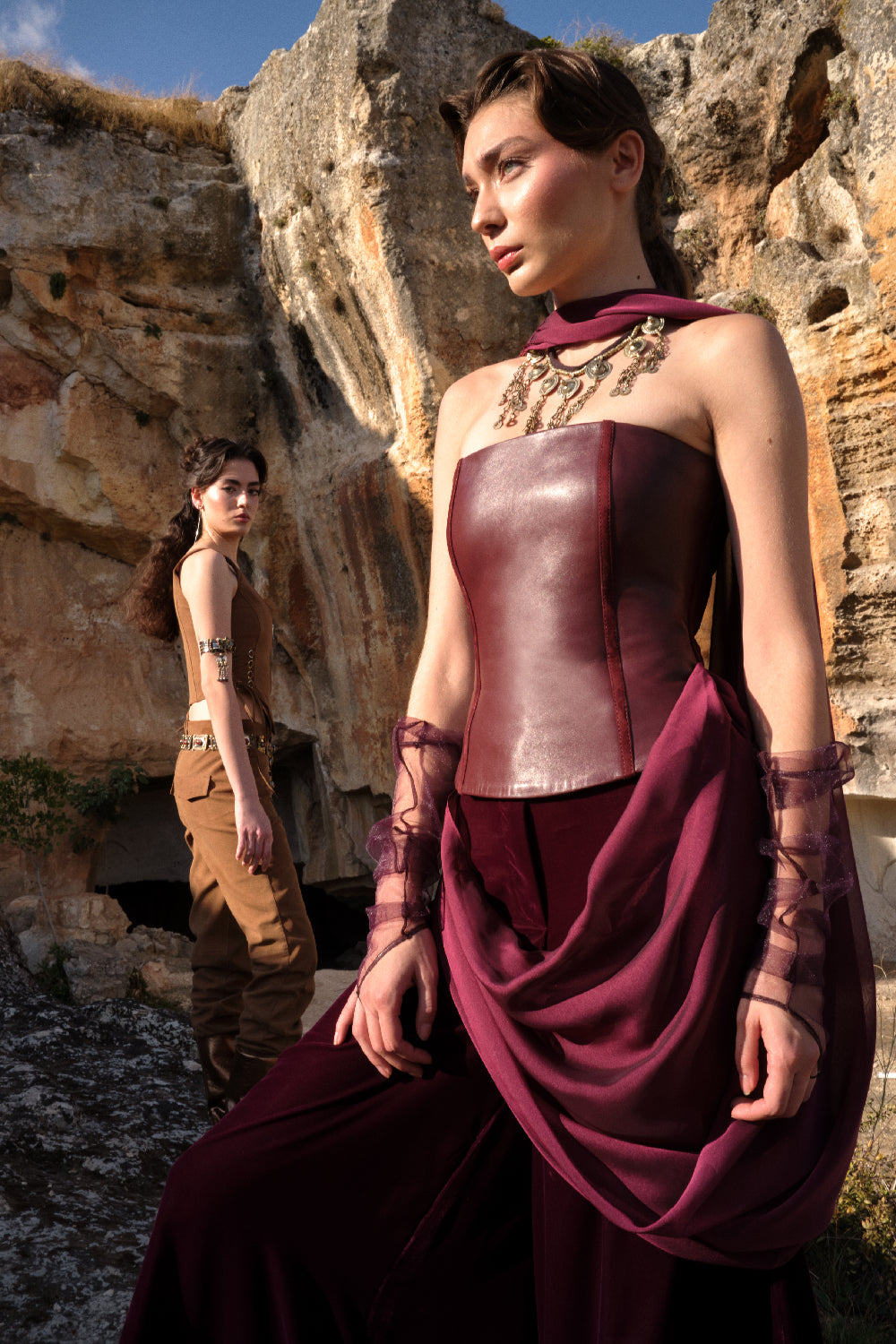 Neolithic Rhapsody draws its inspiration from the world’s earliest known temple, Göbeklitepe — a place where the first expressions of belief, art, and identity took form. The collection reflects a dialogue between the origins of human civilization and contemporary design. Organic silhouettes, textured surfaces, and symbolic details echo the raw beauty and mystery of ancient craftsmanship. Each piece carries a sense of ritual and meaning, transforming primitive inspiration into refined, modern expression. Rooted in history yet shaped for today, Neolithic Rhapsody celebrates the essence of femininity through strength, simplicity, and timeless elegance.