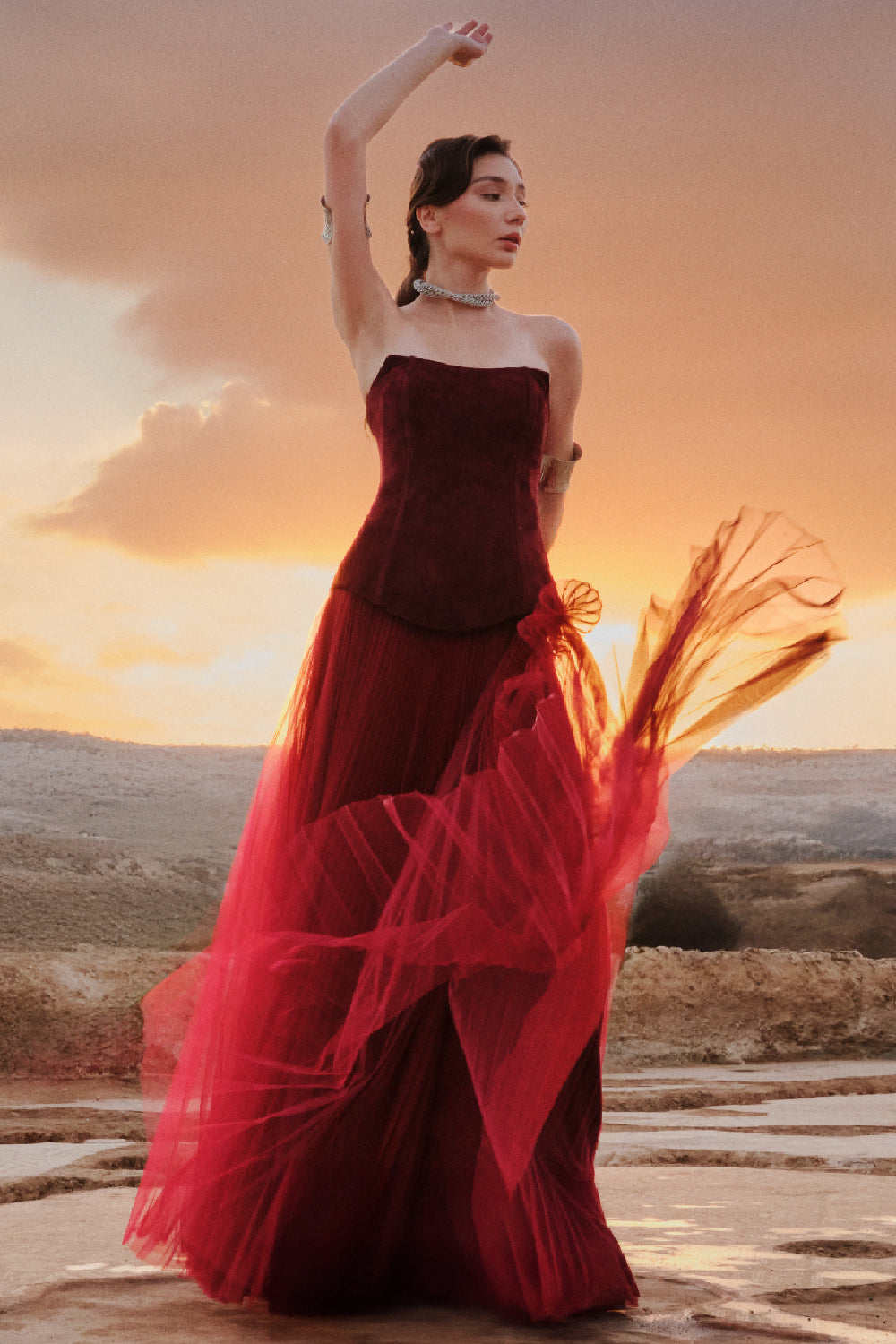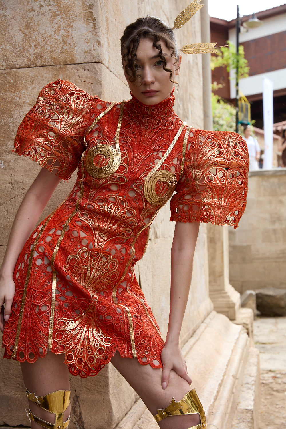 Gilded Symphony is a celebration of light, movement, and timeless grandeur. Set against the historic backdrop of Hadrian’s Gate, the collection draws inspiration from classical architecture and the harmony of ornate detail. Designed for moments that transcend time, Gilded Symphony embodies the spirit of couture — where heritage, artistry, and contemporary femininity unite.
