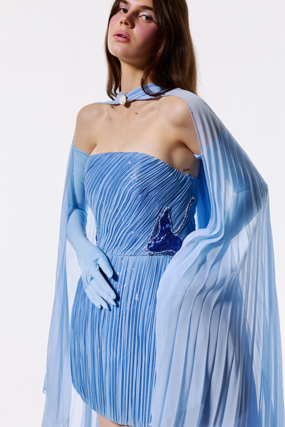 Inspired by the endangered marine life of the Aegean and Mediterranean, the collection reimagines the sea’s living jewels through couture craftsmanship. Intricate embroideries, coral-inspired textures, and bold silhouettes celebrate their delicate beauty while reflecting a vision of sustainable luxury.