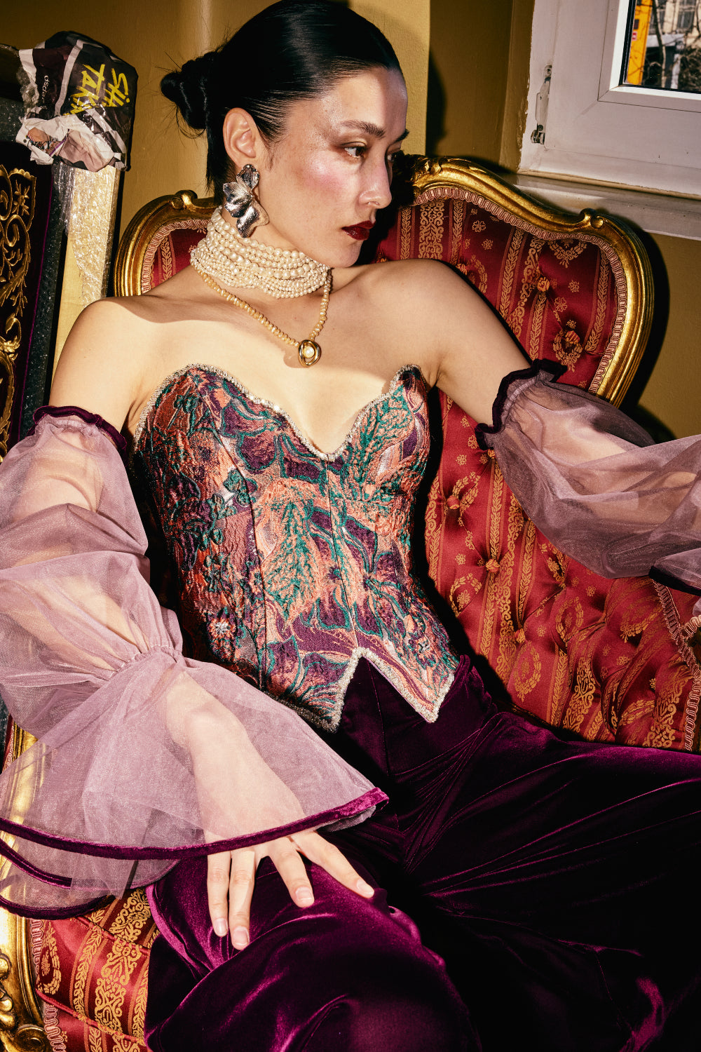 Baroque Botanica explores the meeting point of opulence and nature. Inspired by baroque ornamentation and organic forms, the collection brings together sculptural silhouettes, intricate textures, and refined detailing. Each piece reflects a balance between strength and delicacy, where bold structures are softened by fluid lines and botanical influences. Designed for modern women, the collection celebrates individuality, elegance, and timeless sophistication.